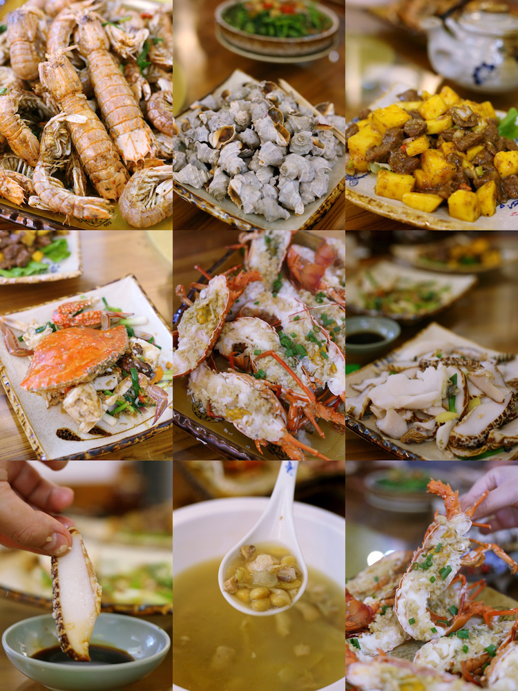 然后加工成海鲜宴,吃着各种口味的海鲜