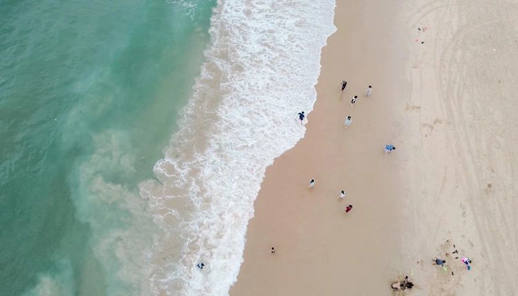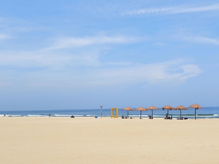 这里沙滩呈东西走向,绵延约2.5公里,沙质细腻,游玩项目多,非常适合在这玩耍。