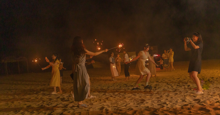 还可以在沙滩上的村民手里,自购各式各样的烟花,制造属于自己的浪漫夜晚~
