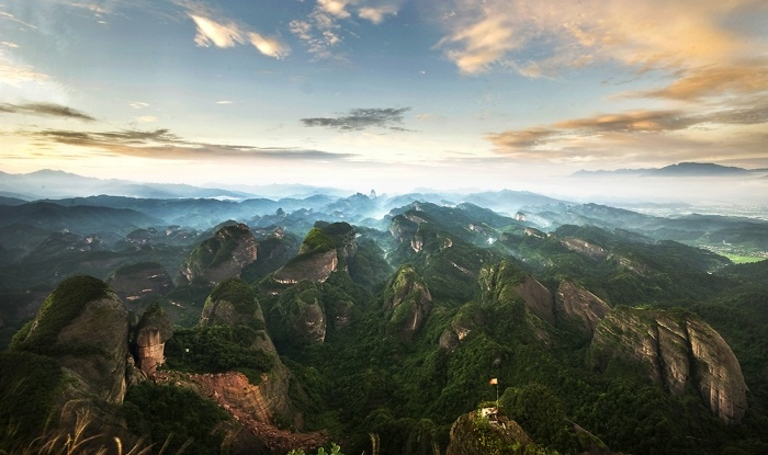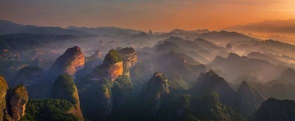 登上顶峰,目光所至,尽皆丹霞奇观,又或云海奇观。恰遇雾景漫山时,高出的丹霞山圆润山顶,就如鲸鱼出海,壮丽无比,被称作“鲸鱼闹海”。山顶平台疯狂拍拍拍,留住眼前美丽的景色。