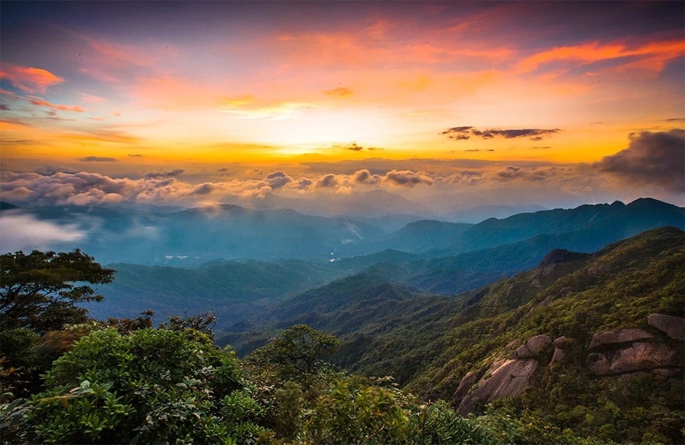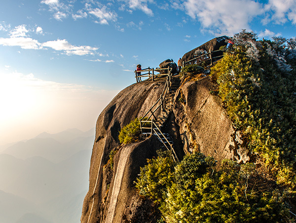 05:30 清晨起床,呼吸大自然最为新鲜的空气,登上【华南之巅】,看日出、观云海、徒步登天梯,赏华南之巅一线天、佛光峰、神仙柱、华南虎等险峻景点。
