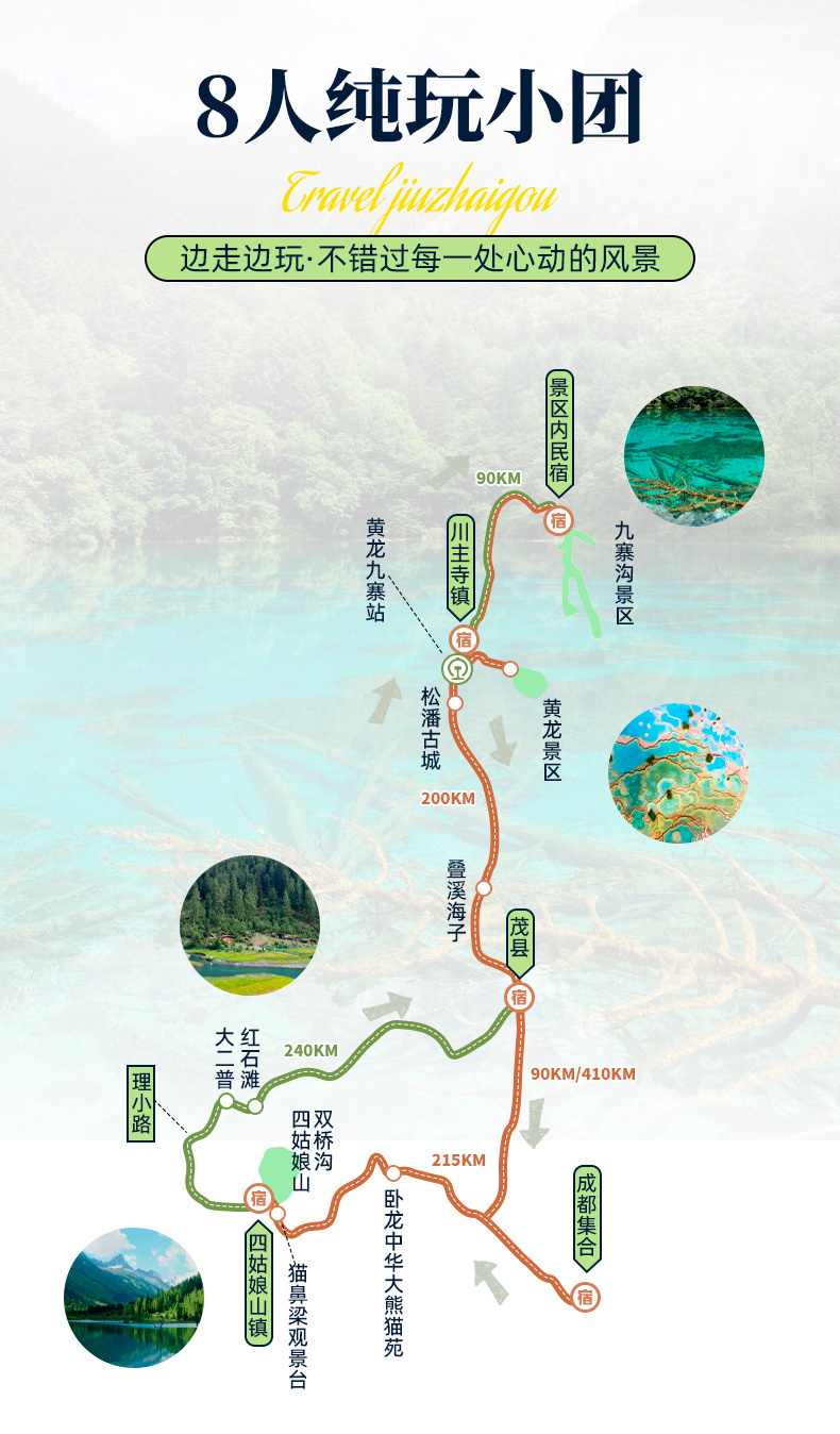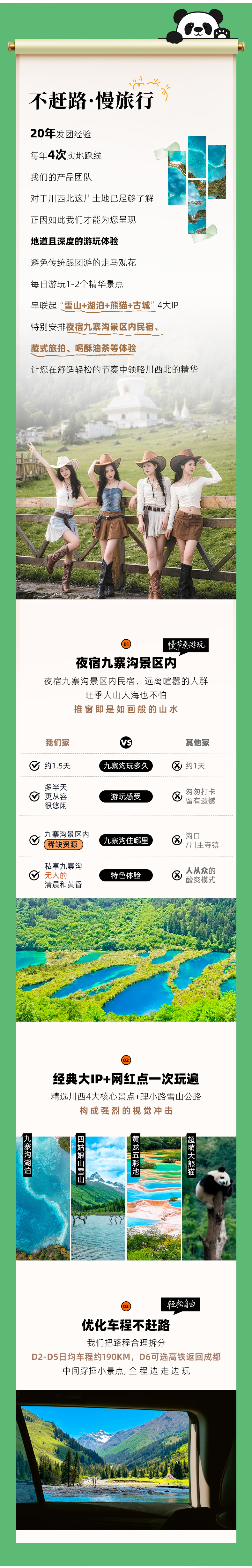 九寨沟+黄龙+四姑娘山双桥沟+理小路+卧龙中华大熊猫苑+松潘古城 6日轻奢慢游