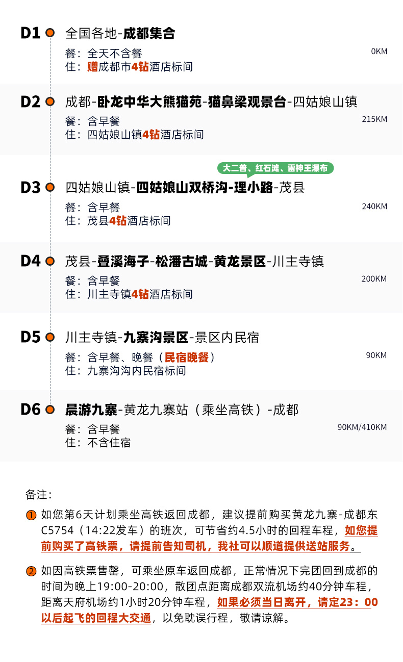 1、交通:不含往返成都的大交通、黄龙九寨-成都动车票;