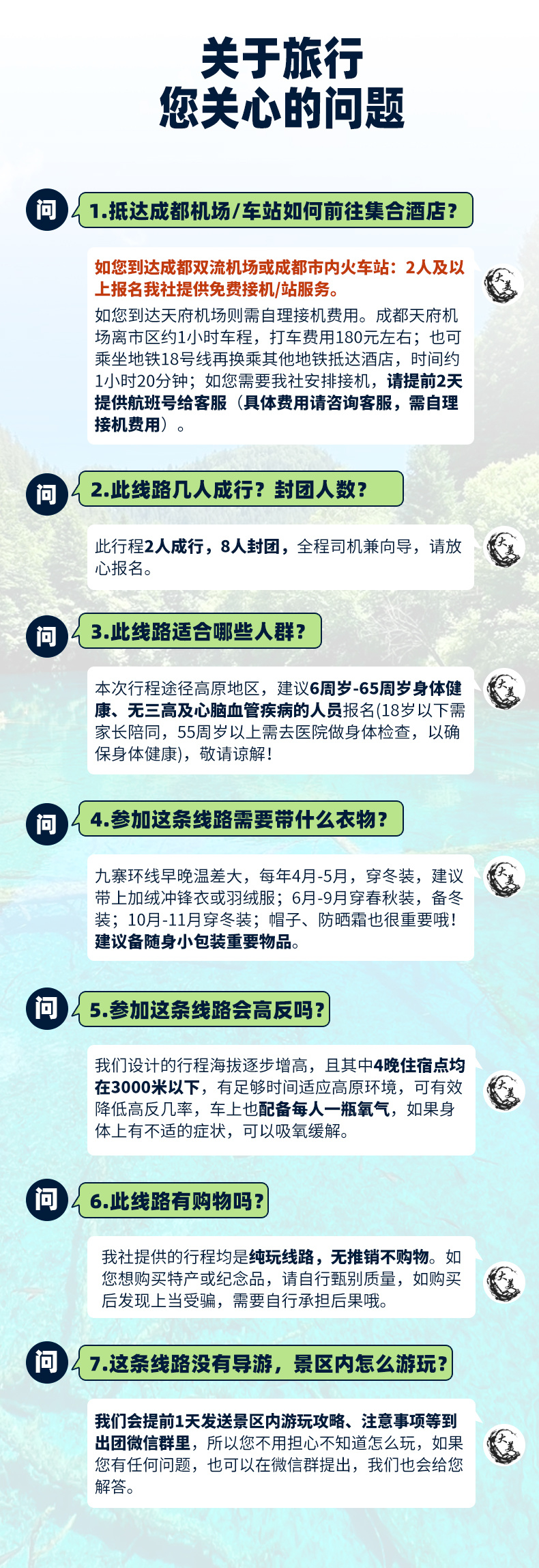 6、2人及以上报名赠成都双流机场接机/市内火车站接站(成都东站、成都南站、成都西站)1次,天府机场接机需自理费用。