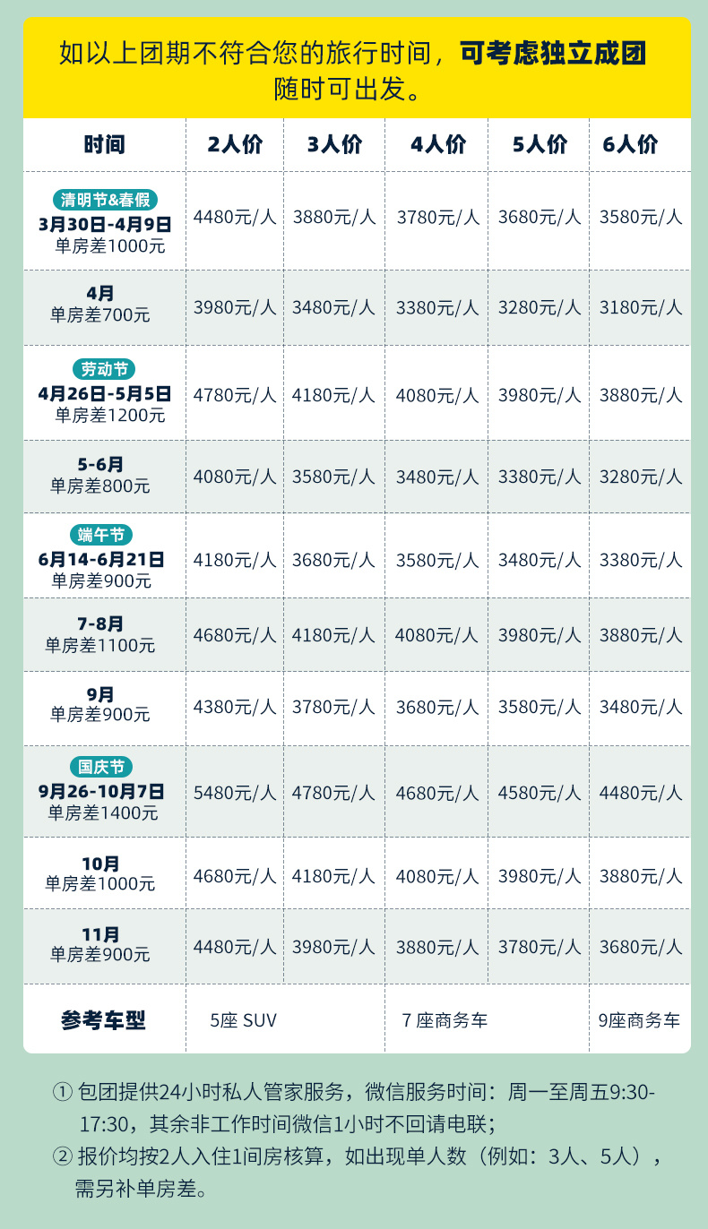 【成团说明】2人成行,8人封团,全程司机兼向导;
