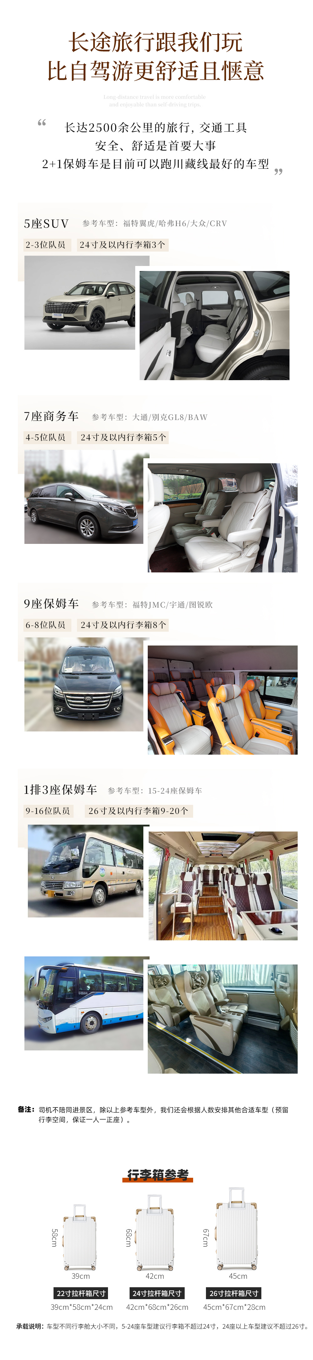 (3)座位:左手第一个座位为驾驶员,右手第一个座位为导游,其他为普通座位,上车后请自行选择座位,高原长途旅行,队员之间请互相谅解;