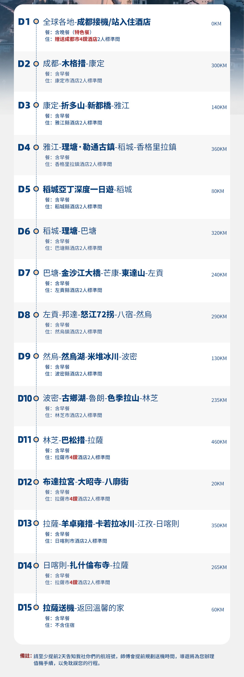 1、交通:不含出發地抵達成都、拉薩返回出發地的大交通(可代訂);