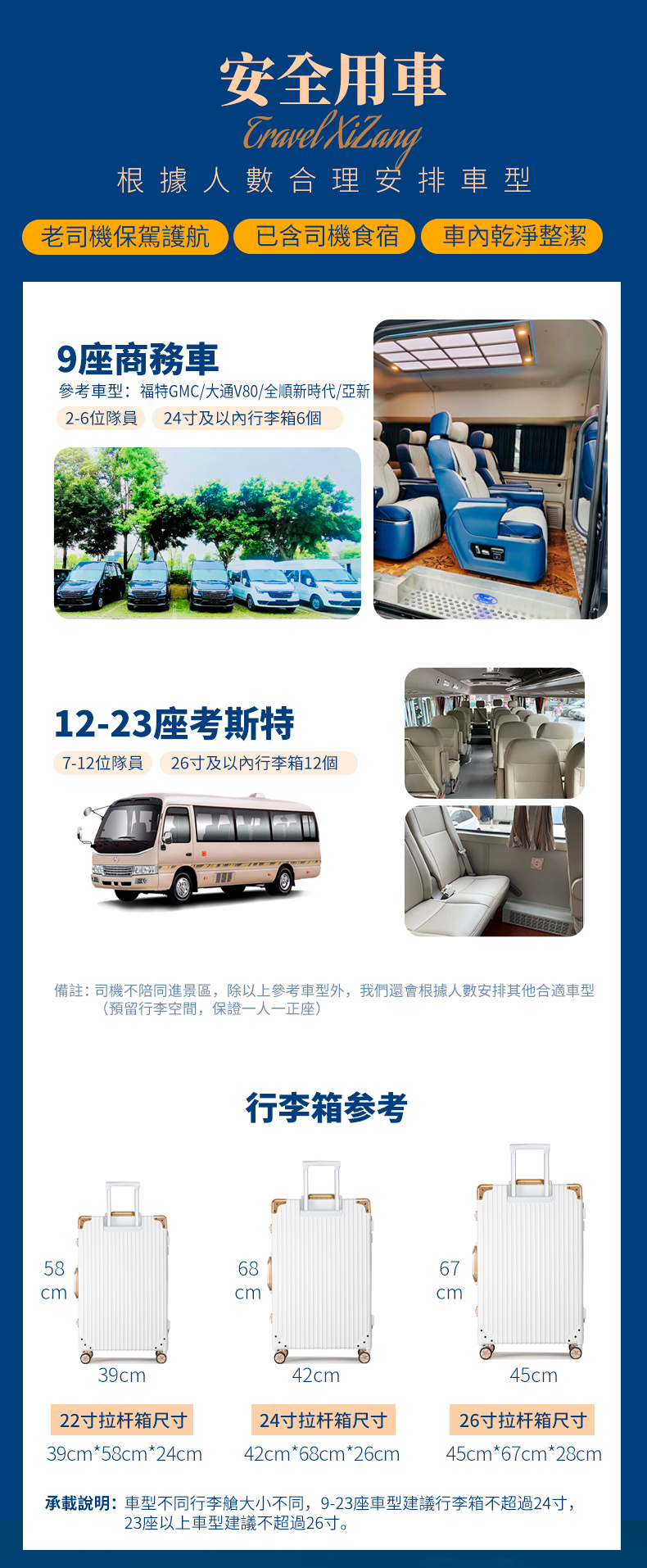 1、車輛:根據人數確定車輛,保證一人一正座(已含駕駛員食宿);