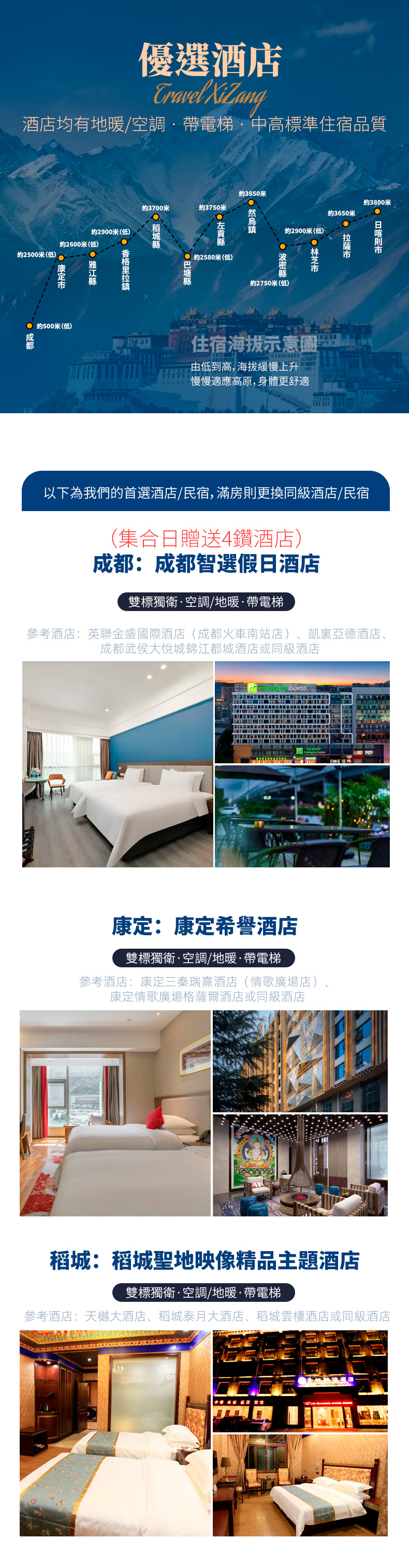 (3)如遇個別酒店,沒有電梯和提行李服務,敬請自理;