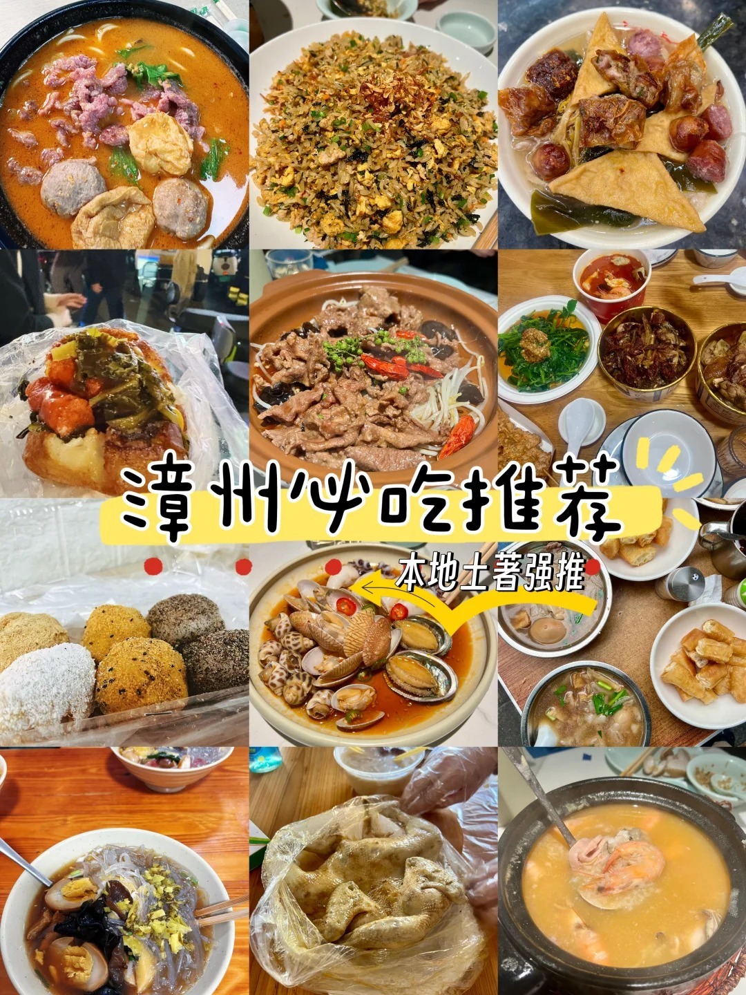 漳州古城的小吃极多,闽南古早味:三角粿、四果汤、豆干面、三角饼、盐焗手枪腿、猪里脊、栗酥饼、锅边糊、海蛎煎、鸡蛋汉堡、豆花粉丝、台湾牛肉面、土笋冻、面煎果、麻糍顺、莲子圆、瓜子糕、土豆爽、生烫、卤面、猪蹄面等等特色福建美食.....