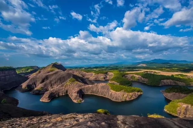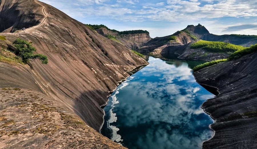 最大的特点就是巨石丹崖周边有漂亮的水洼点缀