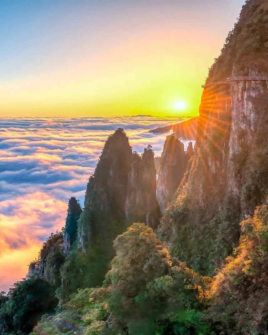 09:30 深度游览五指峰景区,漫步悬空栈道,南中国最长的悬空栈道;