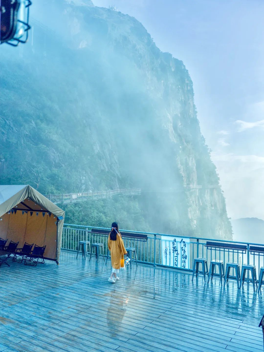 13:00 体验垂直观光电梯(电梯不含在大门票里面,建议乘坐,自理费用:单程40元/人),沿着悬空栈道一路经过金鞭大峡谷-东天门-七星崖-大天台,大天台号称“中南第一险”,运气好可以看到壮观的云海奇观;