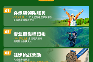 5、 根据旅游法相关规定,不接受未成年人单独报名参加活动;未满18周岁需由监护人带领,并全程由监护人负责照顾。