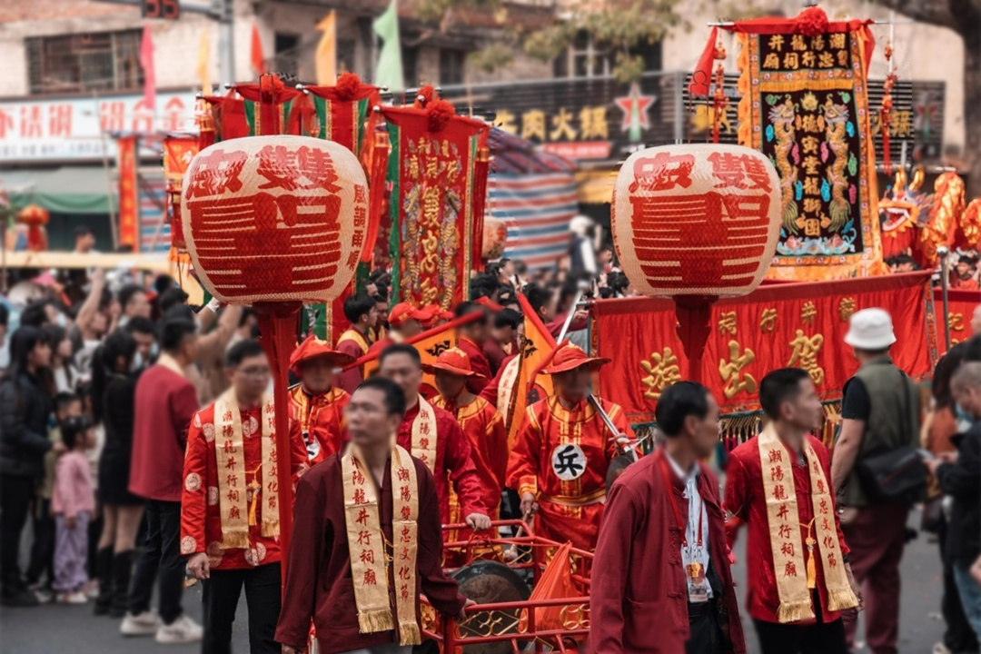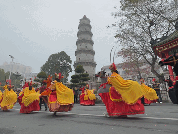 13:30 左右到达【潮阳双忠文化节】场地,跟随巡游队伍,一路观看英歌舞、舞龙、舞狮、游神等表演。亲身感受潮汕营老爷的天花板,潮阳民众燃动的爱国情怀,魅力独特的潮汕传统民俗