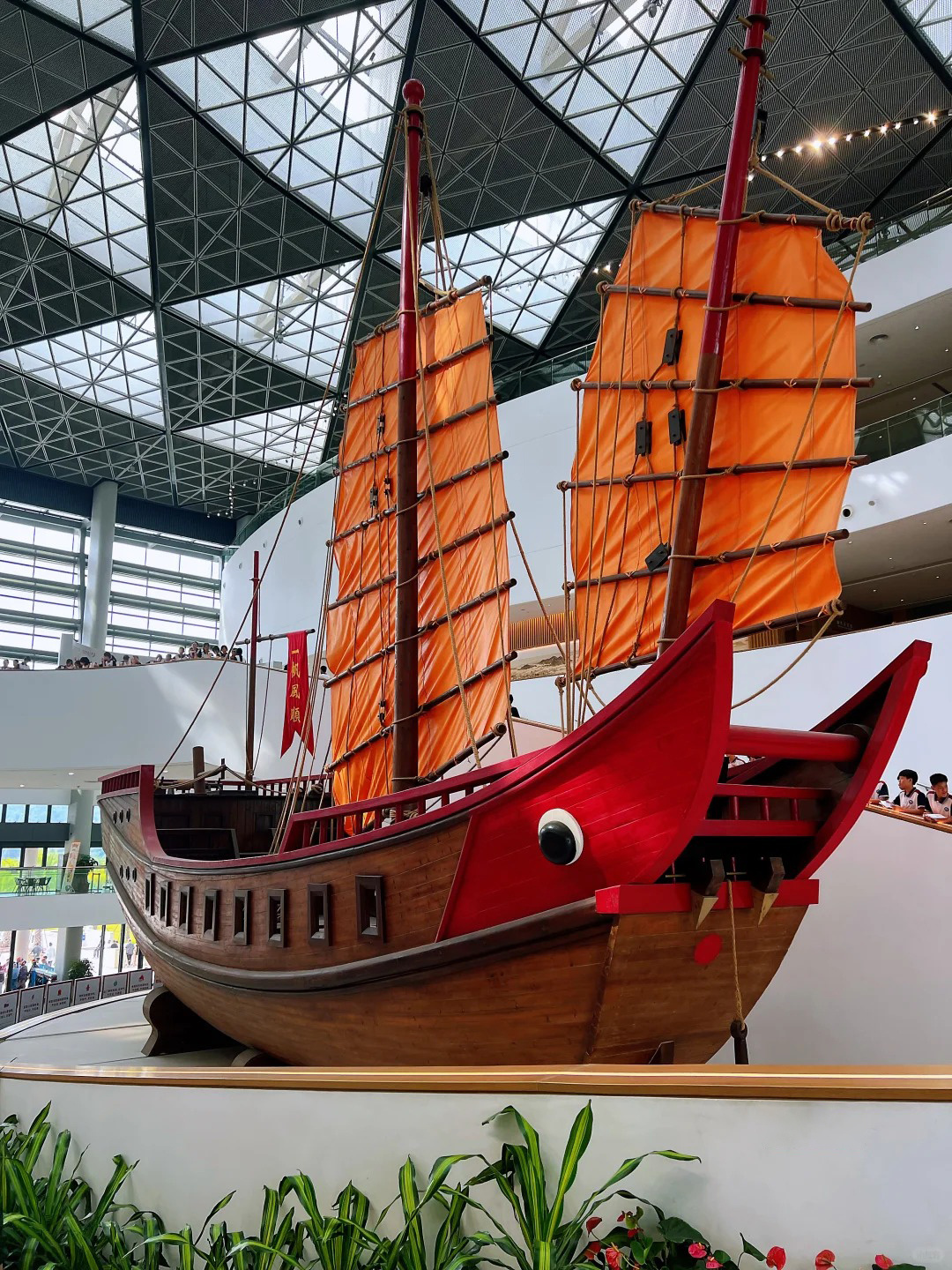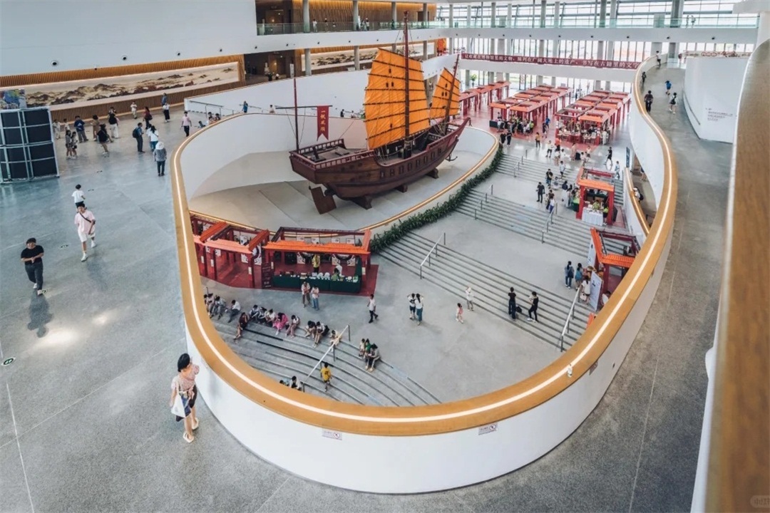 09:00 到达【潮汕历史文化博览中心】,这里有大量非遗文化和华侨历史展品,目不暇接。馆内次第错落的曲线条,正经又可爱的红头船,向海的蓝调玻璃窗,非常出片