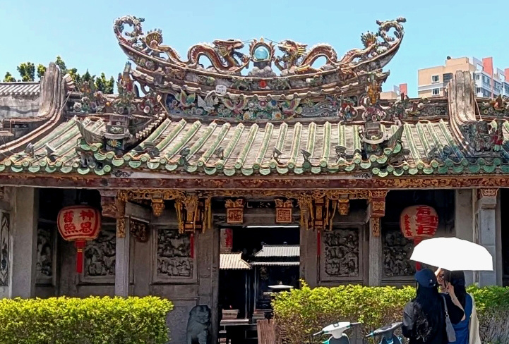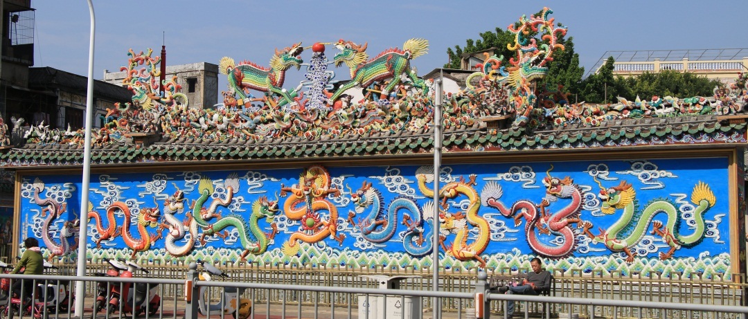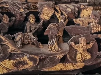 细看宫内横梁,展示着潮州木雕的传统工艺