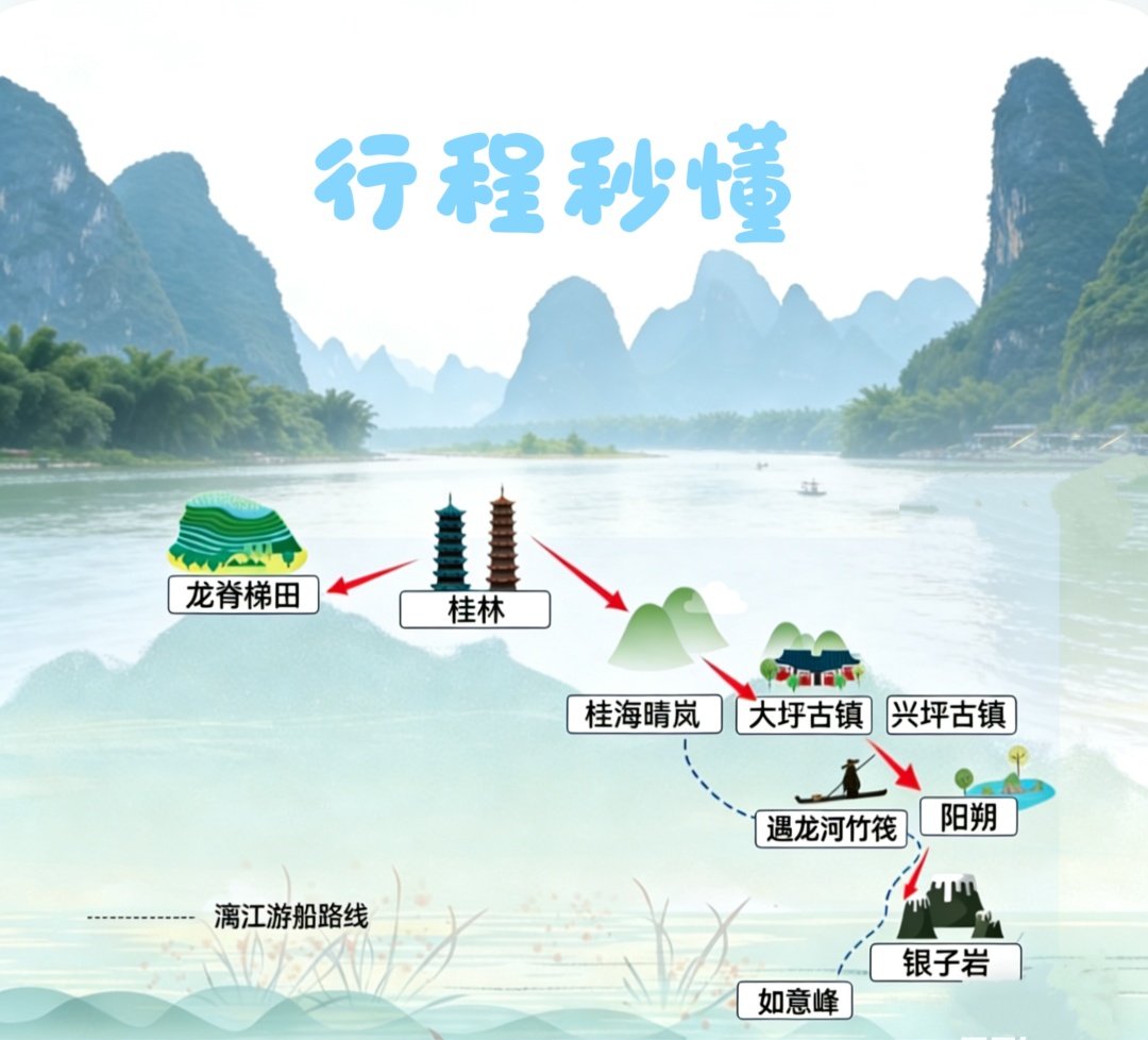 - 行程路线:阳朔 / 兴坪 / 龙脊梯田景区