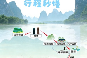 桂林山水精华:路线涵盖桂林山水精华的景区,欣赏桂林山水的各个明信片代表