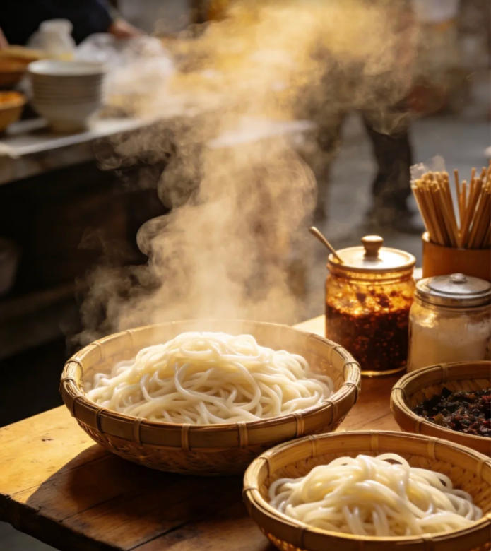 带孩子这样玩:先带孩子尝尝当地特色——兴坪松花糖(酥脆不粘牙,孩子超爱),再来一碗正宗桂林米粉,补充能量