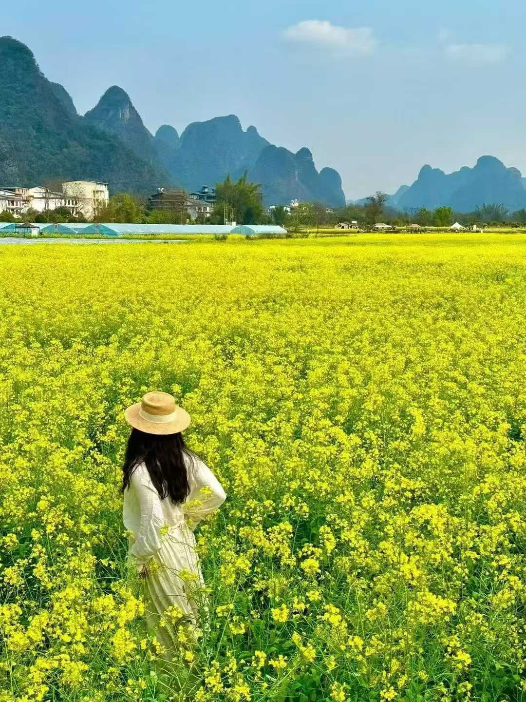 这里位于阳朔葡萄镇杨梅岭村委夕阳山,是目前最热门的《千里江山图》水墨画实景打卡地