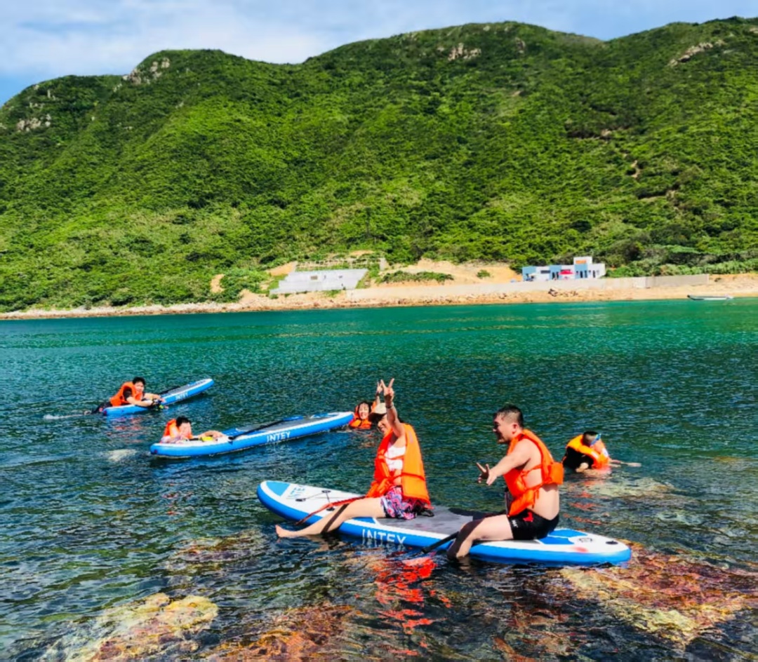14:30 领取浮潜和桨板工具,先听领队讲解浮潜\桨板活动的体验操作要领、注意事项,然后分批开始体验。(特别提醒:活动过程中全程须穿好救生衣)