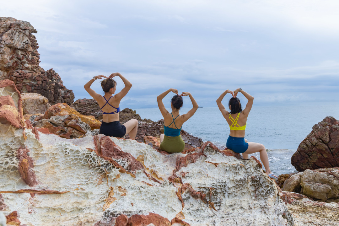 04:30 起床,然后跟随领队一起登海誓山盟峰看日出,探秘防空洞,徒步相思湖畔。这个穿越线路比较休闲,难度不大,但是也要穿好徒步鞋哦(禁止拖鞋登山)。徒步经过三门岛度假村,过了度假村后,后面一段基本上游人稀少,路上山径幽静,空气清新迷人。(不想登山的朋友们可以在沙滩看日出,感受清晨宁静的海滩。吹着海风,踏着海浪在沙滩上嬉戏。记得穿上漂亮的衣服,拍美照。)