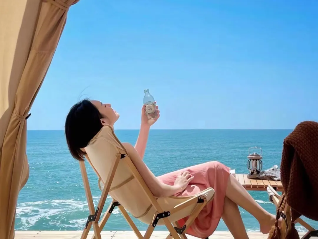 海水湛蓝,视野超好,拉开帐篷就是星辰大海