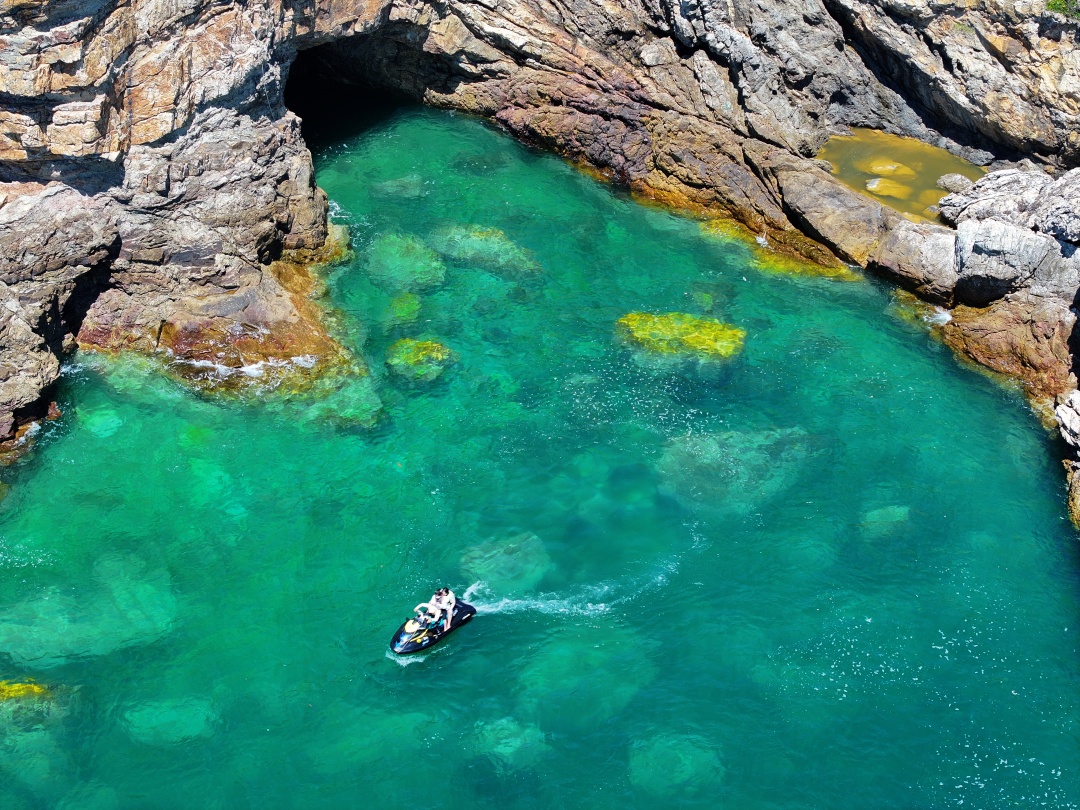 12:30 出发前往东涌海滩,乘快艇飞奔三门岛。沿途欣赏海岛风光,体验海面飞驰电掣的刺激。20分钟航程后登岛北扣码头。