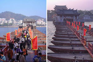 每天10点左右,广济桥会上演一幕“拼船搭桥”,而到下午5点的时候,又会上演一幕“过河拆桥”。