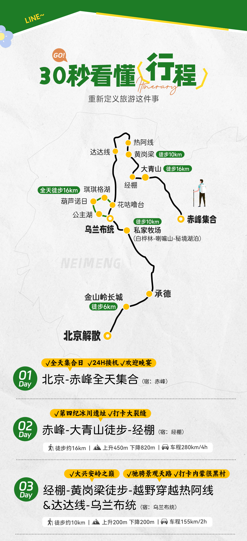2、可免费乘坐北京至赤峰的摆渡巴士(车程约6小时),此为赠送内容,准时准点发车,过时不候;