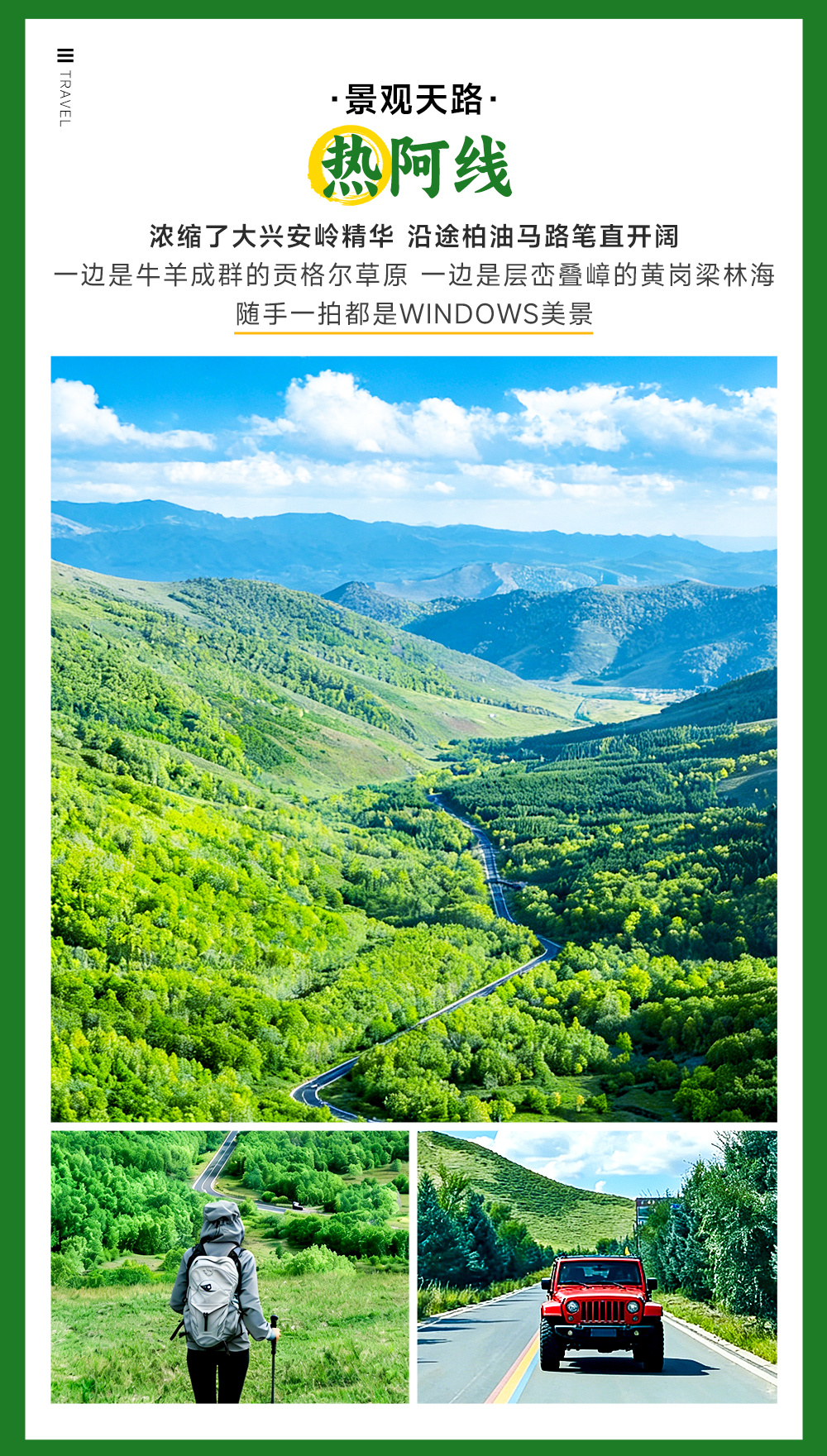 徒步结束后,乘坐越野穿越醉美草原天路【热阿线、达达线】,看两侧风光无限,笔直的公路延伸到天尽头,邂逅贡格尔草原。